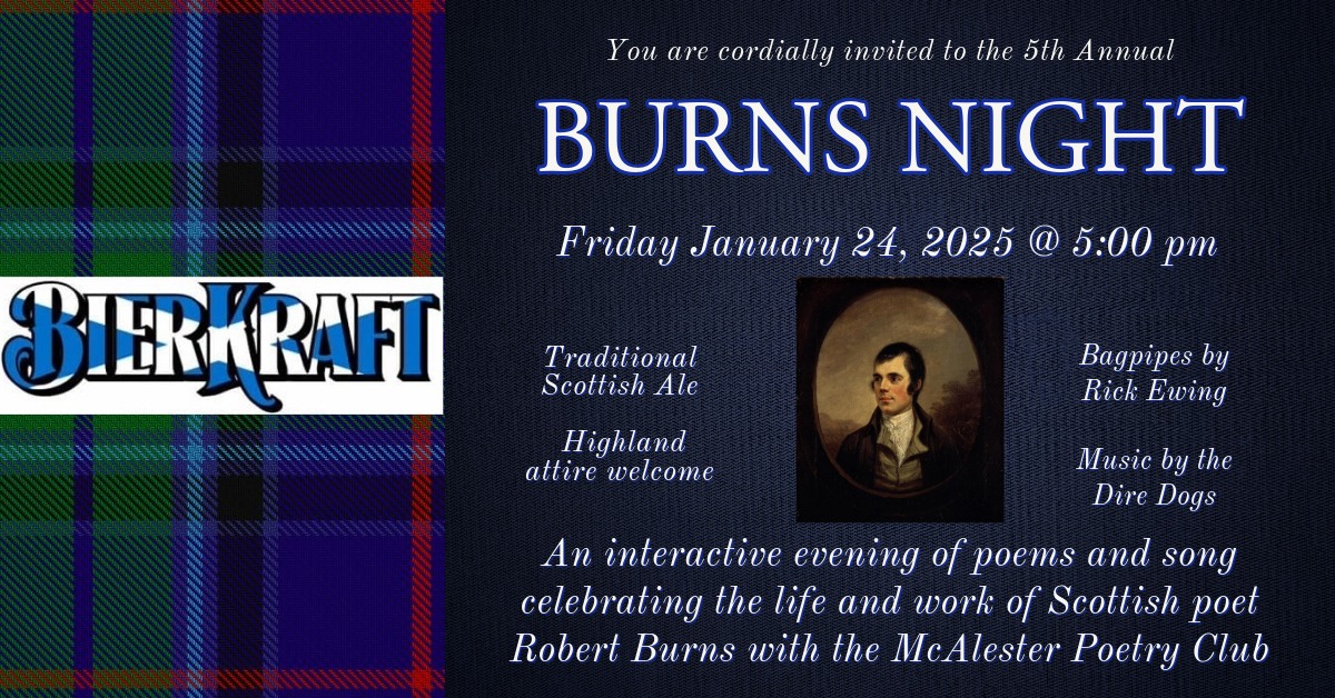 The Poetry Club was excited to join this year’s Burns Night festivities at Bierkraft! Burns Night celebrates Robert Burns, Scotland’s National Poet. Club members read some of Burns poems alongside their own throughout the evening, and we also got to enjoy some traditional Scottish food, drink, and music as well!