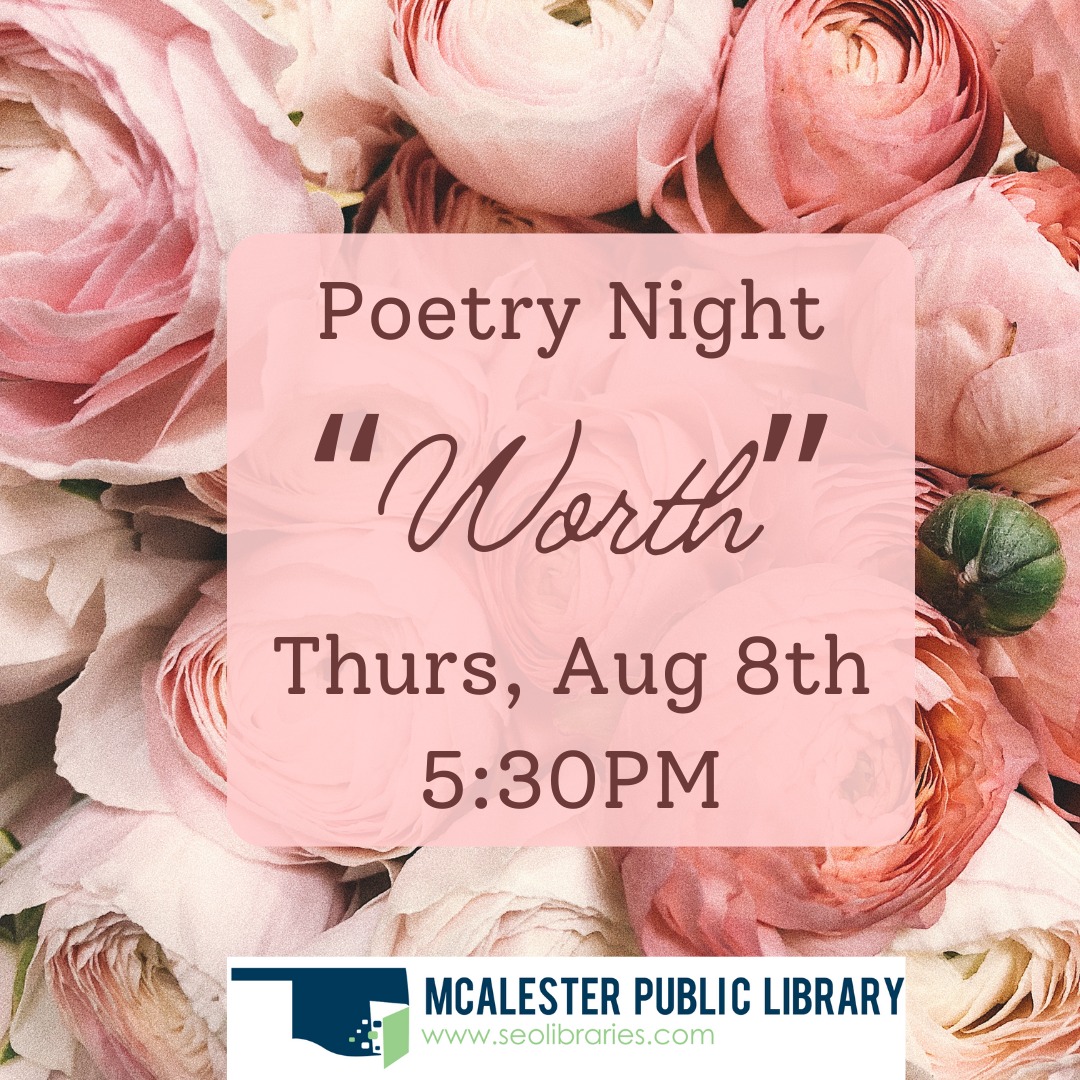 Join the McAlester Public Library Poetry Club on Thursday, August 8 at 5:30PM for Poetry Night at the McAlester Public Library.